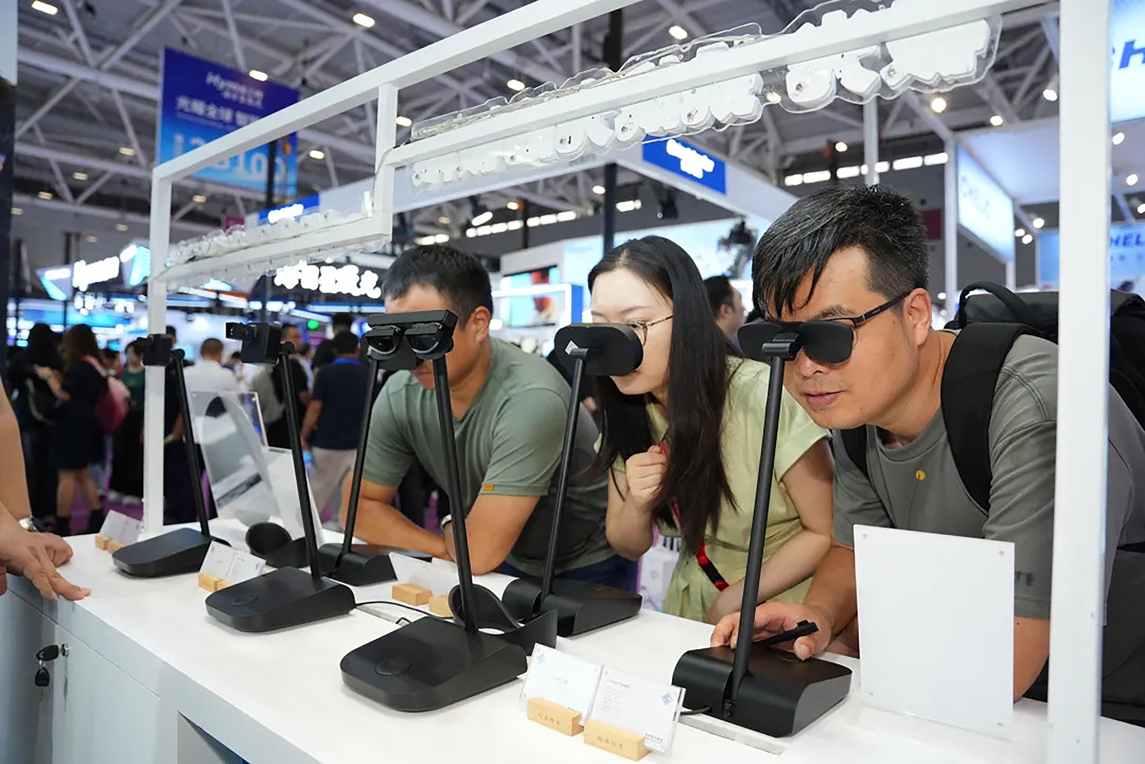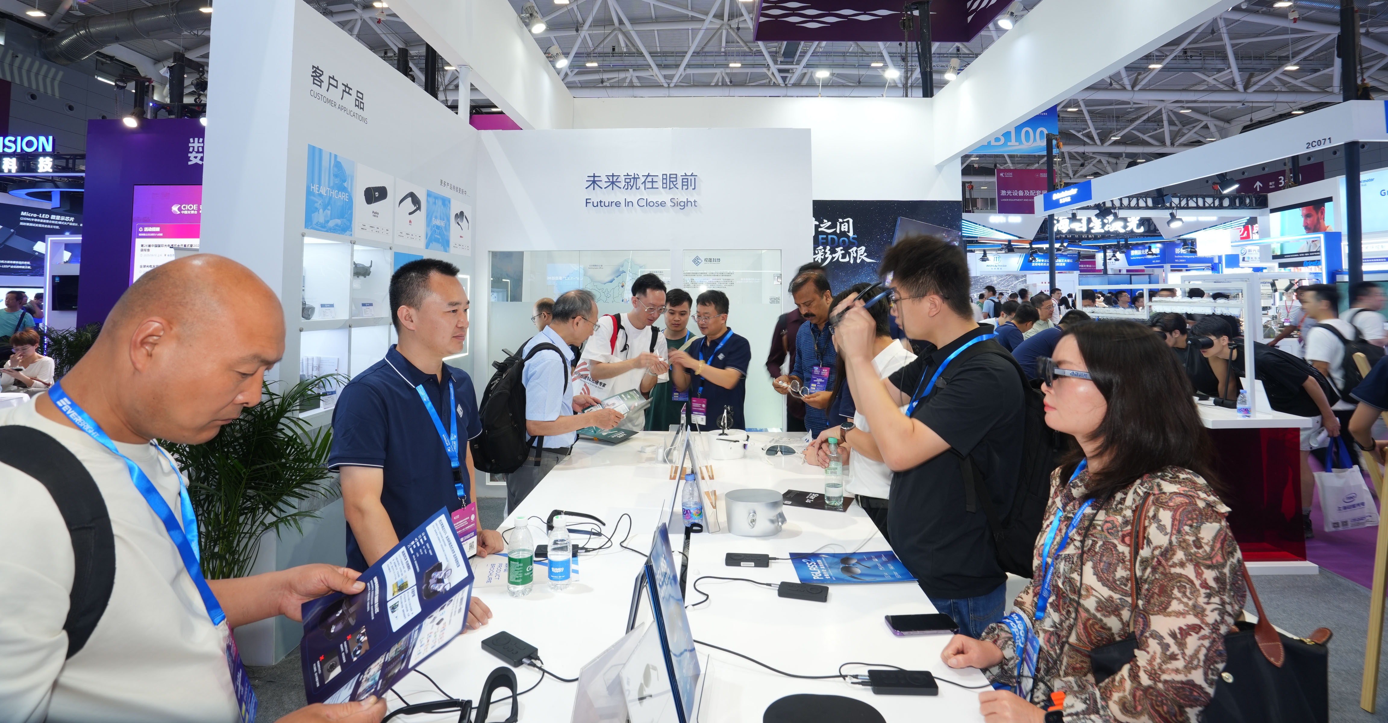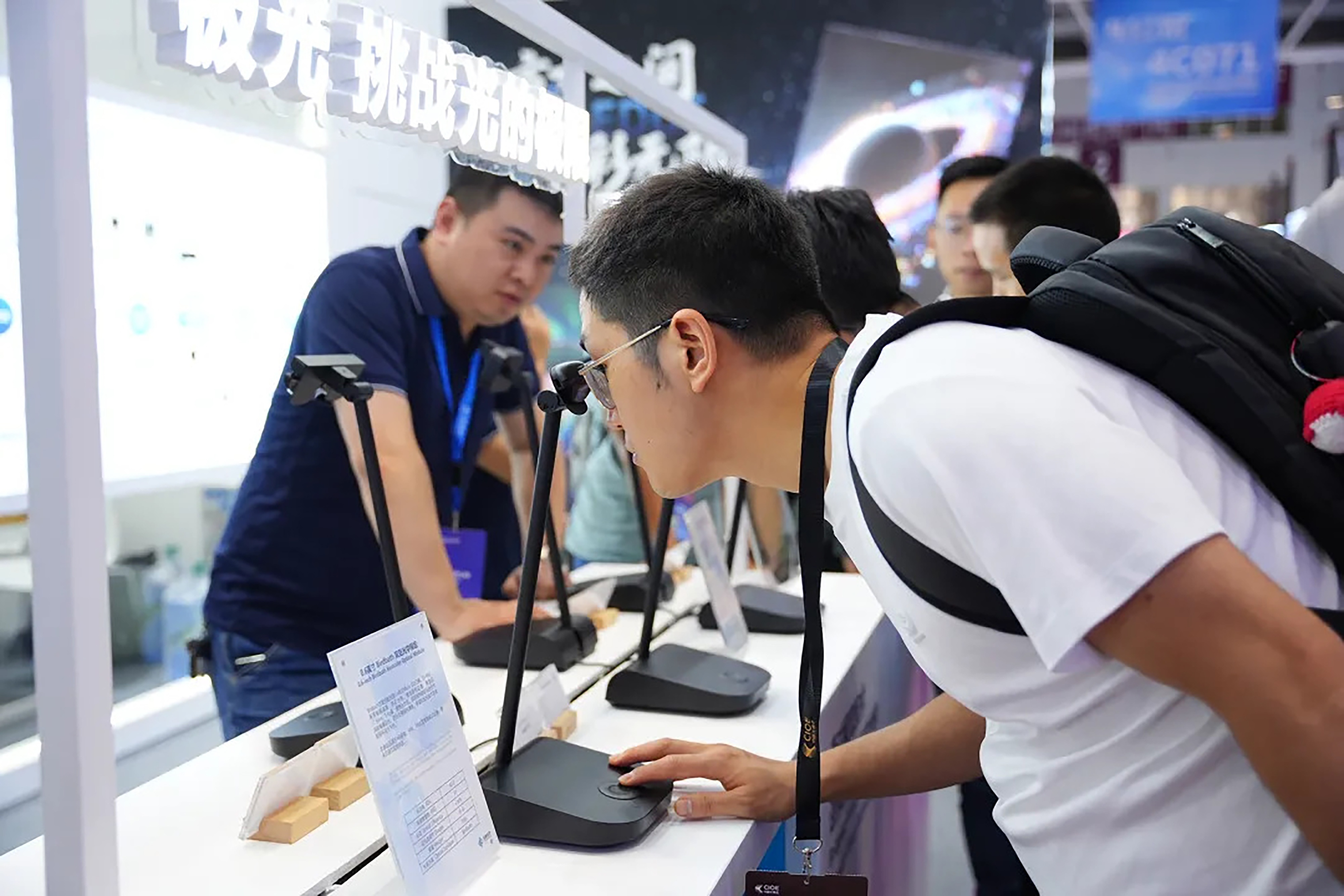 展会现场这些精巧的屏幕吸引了众多行业客户驻足体验,不少观众赞叹其画面细腻、色彩饱满,尤其在暗场表现方面细节出众,真正展现了出硅基OLED在高端显示领域的领先实力。