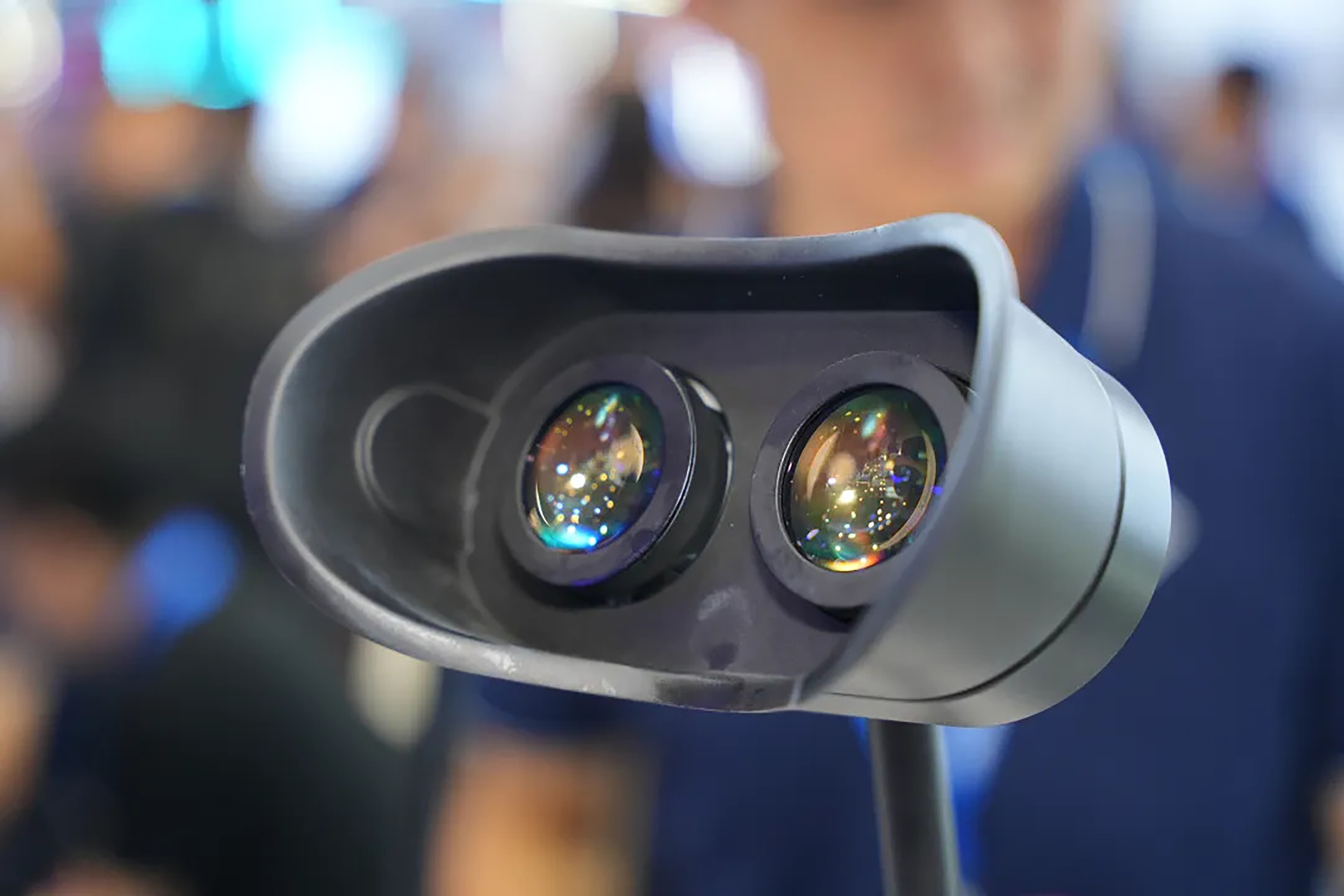 全场最热的展品当属首次亮相的“极光·无界”系列光学模组。这款4K模组,超薄的折叠光路搭载视涯1.3英寸Micro OLED屏,展现了95°超大FOV,以37.4的PPD为大家呈现了高清沉浸视觉体验,小巧的结构设计可兼顾未来整机应用的高性能与佩戴舒适性。